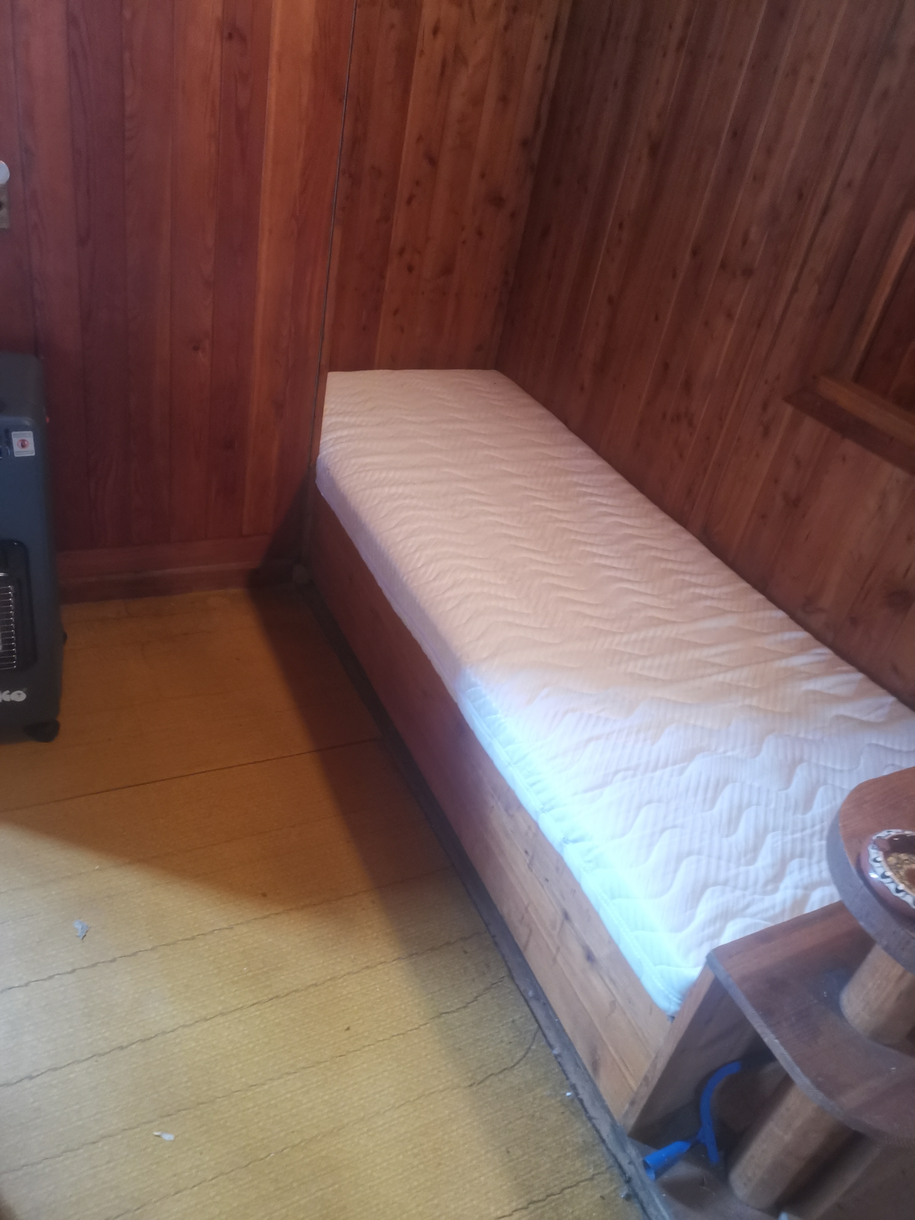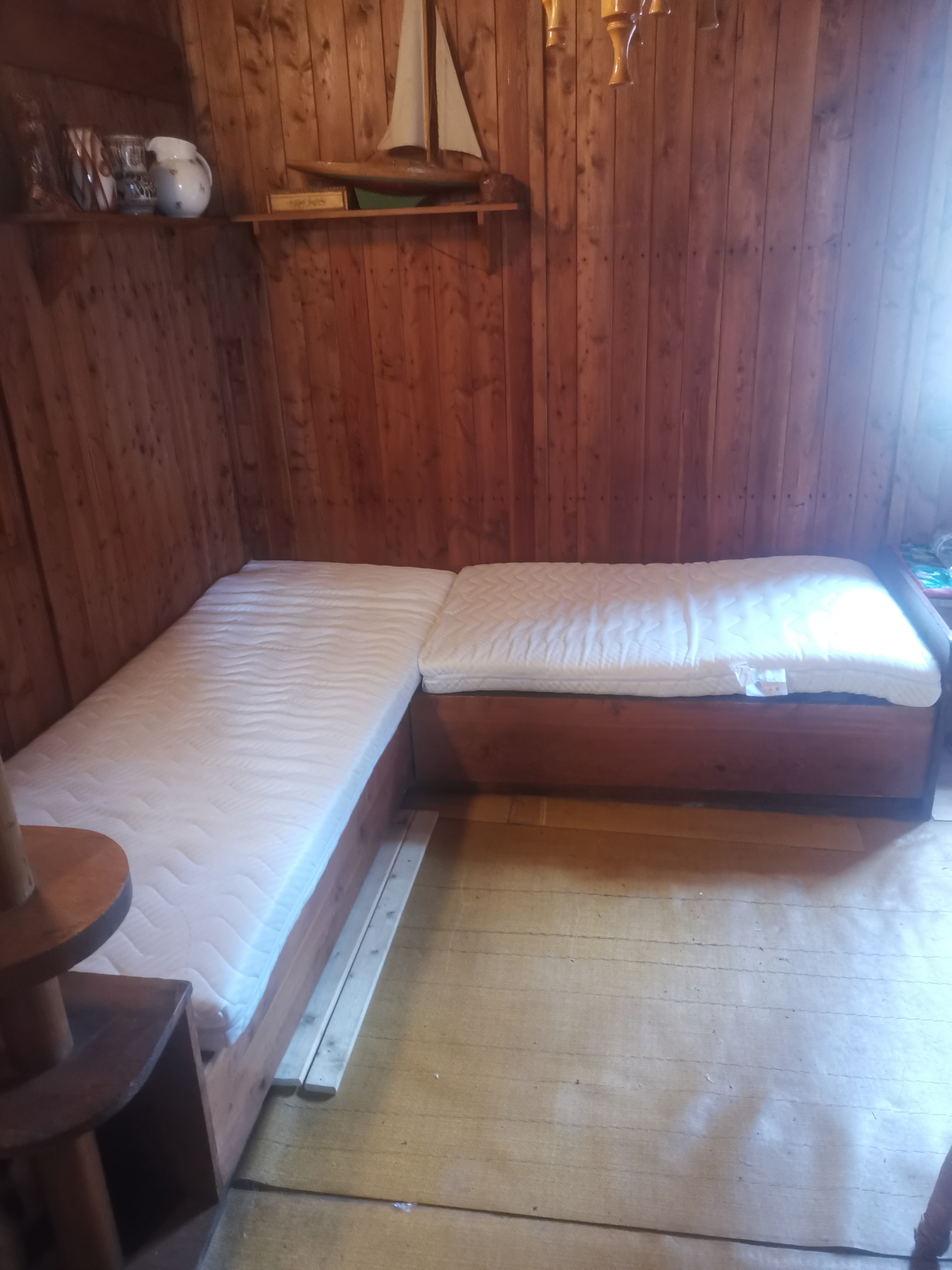 Před odjezdem ještě vybaluji nové matrace do hlavního pokoje (v zadním to musí počkat na zhotovení roštů), aby se do přístě narovnaly.