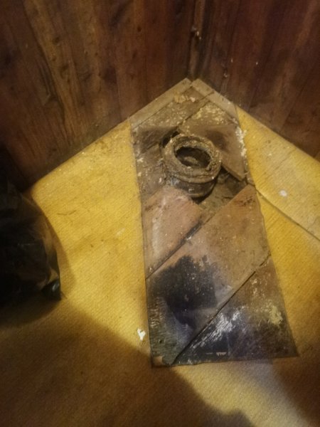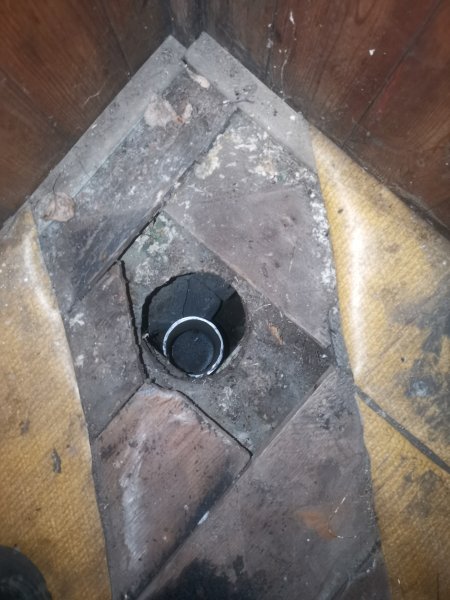 Musím se tedy nejdříve zbavit toho co tam je. Sundat mísu není žádný velký problém, to je za chvilku. Akorát kovová odpadová roura se bude muset nějak odříznout. Vede pod chatu a následně ven směrem k jímce. Pod chatou to ale v tomto místě není moc vysoké, veškerá práce tedy musí probíhat v poloze ležmo, což není tak pohodlné, jak se může zdát :-)