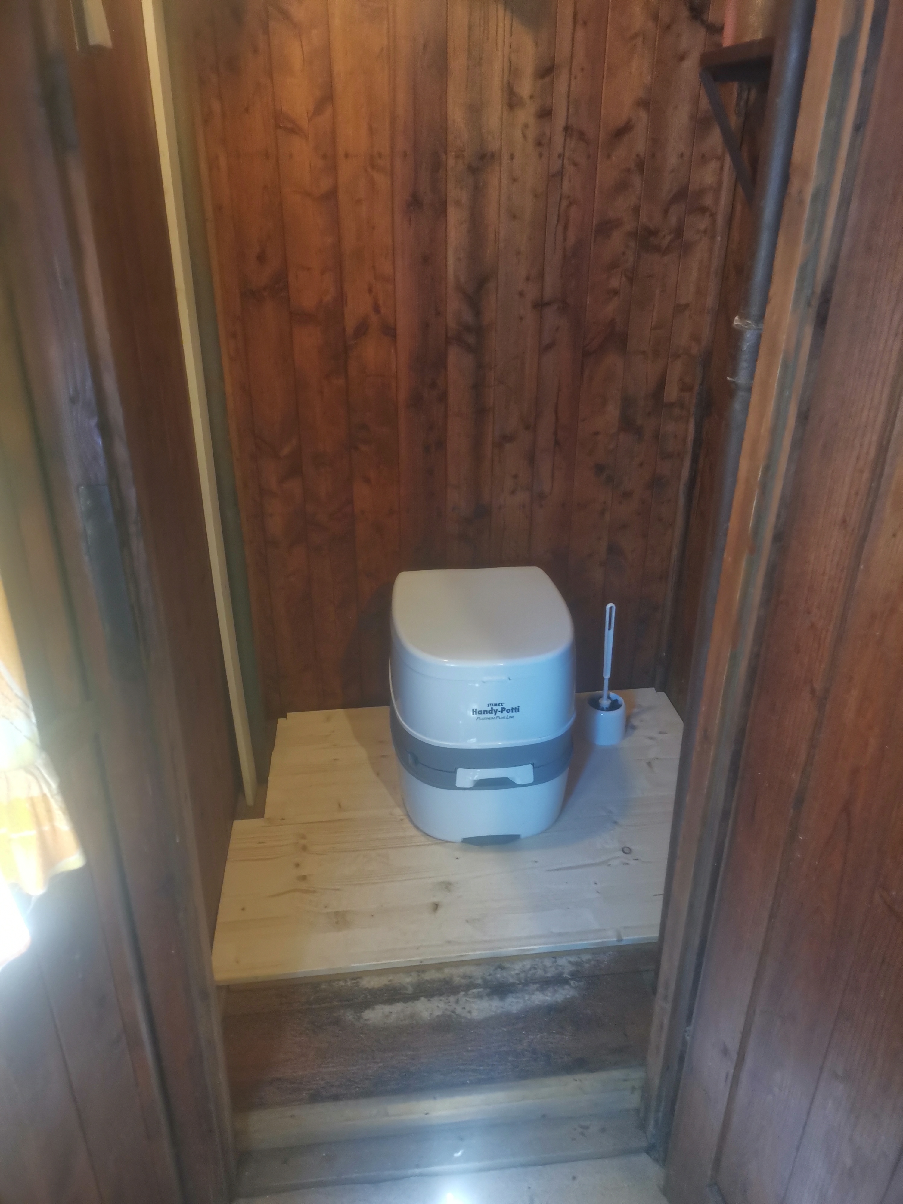 Umístění chemického záchodu v zadním pokoji je fajn, ale asi by bylo lepší ho přemístit na místo nefunkčního záchodu. Přeci jen, pokud přijede někdo na návštěvu a bude obývat ten pokoj, tak by mu nemuselo být úplně nejpříjemnější, kdybych si tam ráno přišel posedět.
